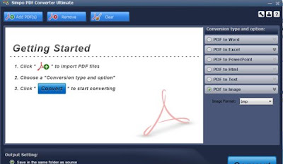 Simpo PDF Converter Ultimate is a converter to convert PDF to Word, Excle, PowerPoint, HTML, Image and Text on a Windows system 7/Vista/XP 32bit/64bit. This application supports batch conversion so it can easily convert PDF to quickly to save time. With this converter can convert PDF files to other formats with high output quality, such as pictures, graphs and tables.