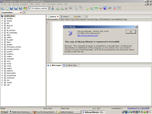 SQLyog MySQL GUI is the most popular MySQL Manager and MySQL Admin Tool, combining the features of MySQL Query Browser, phpMyAdmin and various MySQL Front Ends and MySQL Clients in an intuitive interface. Working with MySQL can sometimes be painful. SQLyog has the ability to take even the most difficult task that takes time and makes them easily.