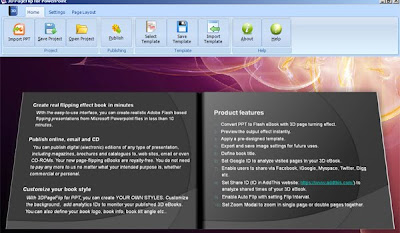 3DPageFlip for PowerPoint is an application to make flippingbook as creator tool to create interactive flash-based content from PowerPoint slide shows with 3D effects Flip the page. It offers time-saving way to create rich-media presentations interactive 3D for easy publishing and sharing online. You can create interactive 3D magazines, catalogs, brochures, books or newspapers of Microsoft PowerPoint in minutes without any Flash / HTML or programming skills. By converting PowerPoint to Flash documentation, it inherits the strength of Microsoft PowerPoint, and extends with a smaller file size, greater multimedia integration, easier accessibility and more trusted security.